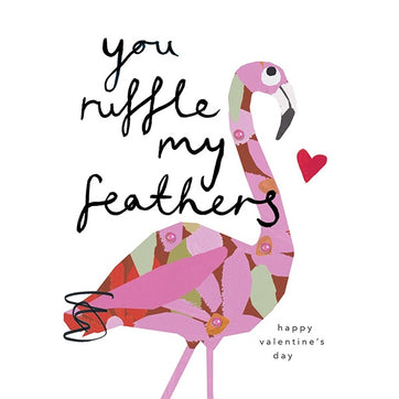 You ruffle my Feathers. This bright and bold hand-finished Valentine's card is sure to make them stand up and take notice. The card is blank inside, is printed on forest friendly card, and comes with a bright red envelope.