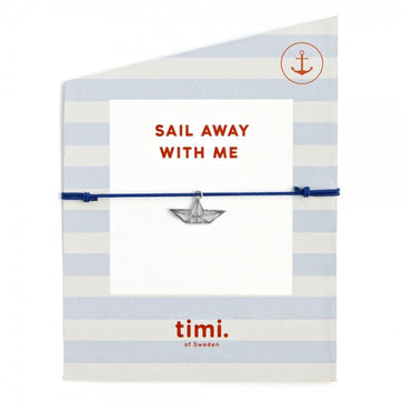 This size adjustable sweet bracelet's pendant is made from brass alloy and features an origami boat. One size fits all- the strap can even be adjusted small enough for children. It comes wrapped around a printed card and the message: 'Sail Away With Me'
