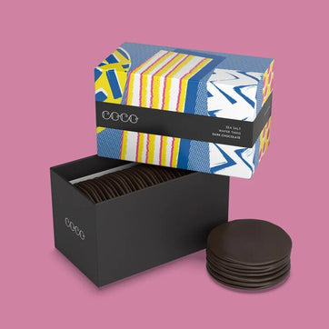 These dark chocolate thins are delicately crisp and have a hint of sea salt for that little extra edge.