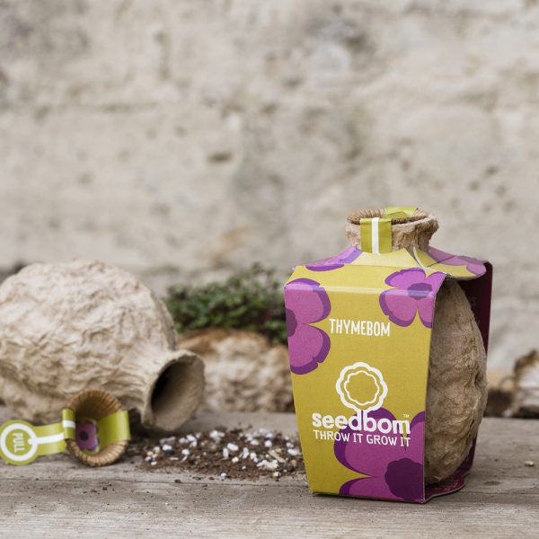Thymebom contains thyme seeds, a herb known for its scented lilac flowers. Not only is thyme an edible herb it is also an important nectar source for bees.