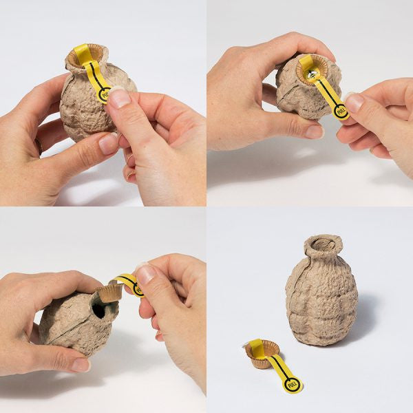 Pull the pin and throw or drop Seedboms into areas that are in need of brightening up. Seedboms like bare soil, natural light and to be kept damp whilst growing. Full instructions are included on inside of each Seedbom sleeve.