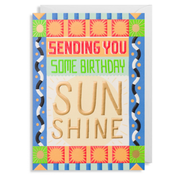 This is a funky, bold card featuring bright colours, eye-catching patterns, and gold foil detailing, making it perfect to send some celebratory sunshine.