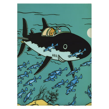 This A4 plastic folder sleeve features a scene from Red Rackham's Treasure of Snowy and Tintin in the shark submarine.