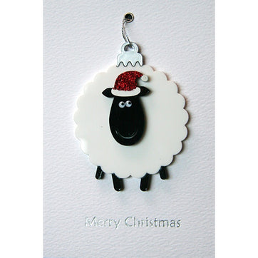 Merry Christmas Sheep Bauble. This hand made Christmas card with acrylic decoration can be detached and added to your Christmas tree.