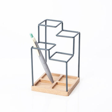 Add a trendy touch to your desk with this playful desk tidy, made from beech wood and grey coloured steel, designed to look like a playful 3D sketch. Ideal for those looking for a stylish pop of colour!