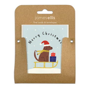 This adorable little cartoon dog is enjoying some wintery activities in the snow by delivering some presents by sled. Lovely and simple, these are sure to bring smiles this festive season.