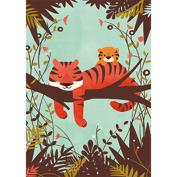 Sleeping Tiger and cub by Jay Fleck is a warm and cosy card. This mother's day card by Jay Fleck is blank inside and comes with a smart green envelope.