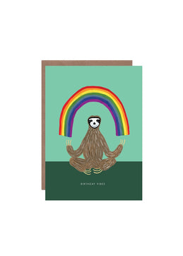 Send good vibes to your friends for their birthday with this relaxed smiling meditating sloth. Printed on high quality card from suistanable sources.