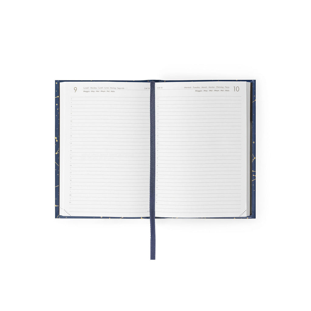 Keep yourself organised with this star-spangled small daily diary for 2022! Featuring a ruled page for every day from 8am to 8pm, there's plenty of space for your tasks each day. Includes monthly planner pages, international holidays and a removable address book. Keep tidy with an elastic closure, ribbon bookmark and perforated corners you can tear off at the end of the day to make it easier to find today's date.