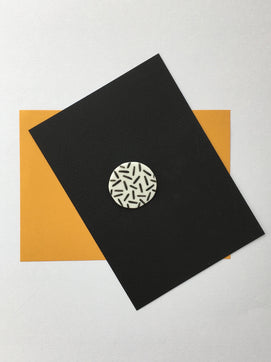This small pin with dash design is left matte and unglazed, the clay is marble smooth and has a translucent quality. Backed with a sterling silver brooch pin, make a statement on a jumper or t-shirt.