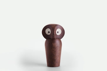 This gorgeous wooden owl was designed in 1960 by renowned architect Paul Anker Hansen. Its rotating head allows for new positions and expressions, keeping your bird interesting. ArchitectMade products are designed to last for generations, so this owl is a friend built to last. This particular design comes in a smoked wood colour which makes the lighter eyes stand out beautifully.