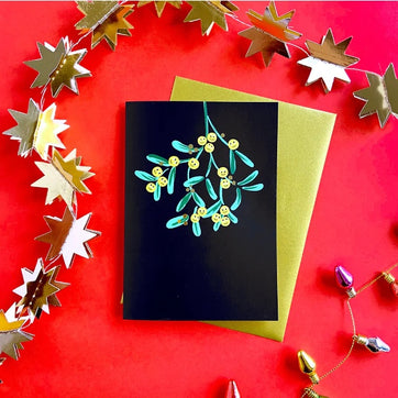 Share the Christmas cheer with this joyful, smiley Mistletoe card! These happy Mistletoe berries are bound to make anyone smile with their bright faces contrasted against a matt black background.