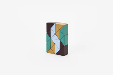 A classic toy with many possible shapes and solutions. These snake blocks are made from 24 painted wooden blocks, all connected with an elastic band running throughout.