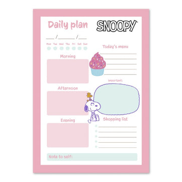 Get yourself super organised and make a daily plan with Snoopy! This A5 pink daily planner is the perfect size to fit into your handbag so you can make plans on the move. Features morning, afternoon and evening sections - as well as food planning and space for your own important notes.