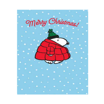 Send some festive fun with this adorable Snoopy Christmas Card. This card features Snoopy adorably dressed for the winter weather in his anorak and bobble hat as the snow falls around him. This card is blank inside, perfect for spreading your Christmas best wishes with a personal touch this year.