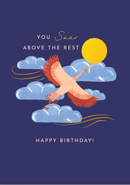 Taking a cue from the art of mindfulness and Japanese influences, this majestic bird soaring through the skies is a beautiful card to give someone special for their birthday. Left blank for your own message.