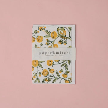 A luxury block-printed greeting card, hand crafted by skilled artisans on beautiful tree-free paper. Each card is unique and comes with a matching peel-and-seal envelope.