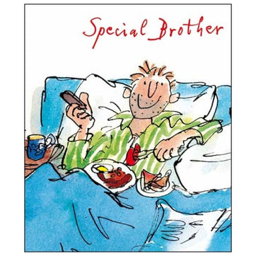 Spoil your 'special brother' with this quirky Quentin Blake card and maybe even treat him to some breakfast in bed! This brotherly birthday card is printed on card from sustainable forests and comes with a quality white envelope. Make sure his day gets off to a great start.