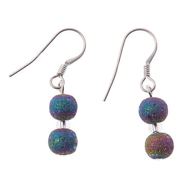 These earrings from Welsh jeweller Carrie Elspeth, catch the light and shine with a beautiful lustre. They are made from Indian glass beads, and have sterling silver drop hooks.