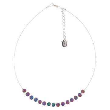 Stand out from the crowd with this Spectrum Lava Links Necklace from Welsh jeweller Carrie Elspeth. Made from Indian glass beads which shine with a bright lustre, this necklace is the sister to the Full Necklace, and is sure to bring attention. It is approximately 43cm (19") long, with a 5cm (2") extension, and is finished with a silver-plated clasp.