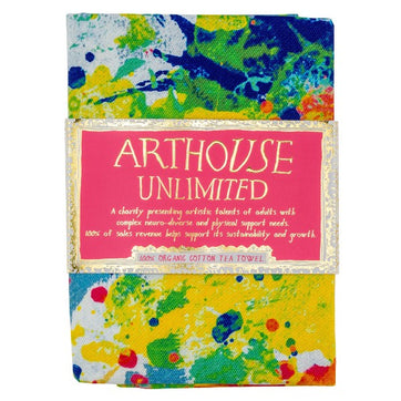 Bring the colours of spring into your home with this colourful 'Spring' Cotton Tea Towel. This 100% organic tea-towel features the bright and cheerful artwork 'Spring' by artist David Bell, an artist at Arthouse Unlimited, a charity that showcases the artistic talents and skills of adults living with complex neuro-diverse and physical support needs. With a bold and colourful pattern, this tea towel will bring a smile to your face whatever the seaon, and is perfect for lovers of unique art and supporters of good causes.