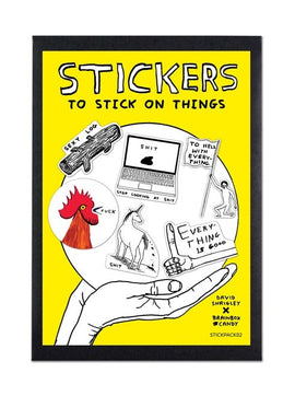 Pack of 6 die cut official David Shrigley stickers, featuring some of his most well-known designs.