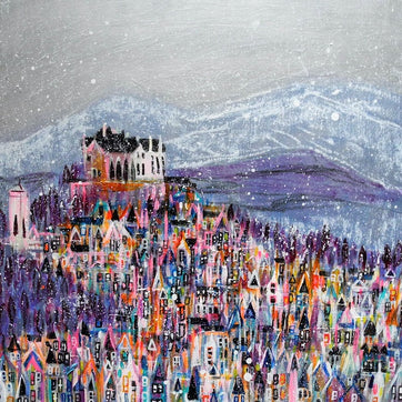 Support Scottish artists this Christmas and accompany your festive wishes with Nikki Monaghan's stunning painting of Stirling blanketed in snow.