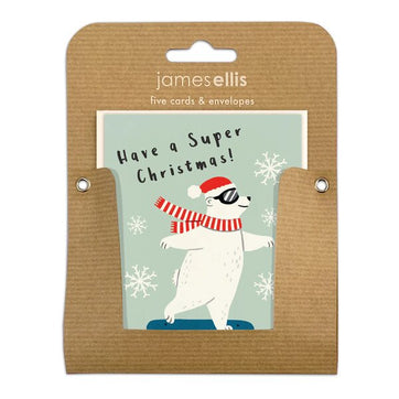This adorable little polar bear is enjoying some wintery activities in the snow. Lovely and simple, these are sure to bring smiles this festive season.