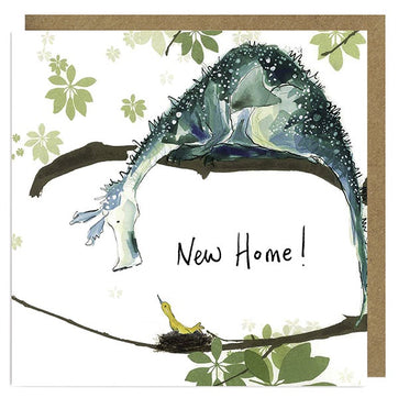 New Home. This new home card illustrated by Edinburgh based Catherine Rayner from her 'Sylvia & Bird' childrens book. This card is printed on 300gsm card, is blank inside and comes with a brown kraft envelope.