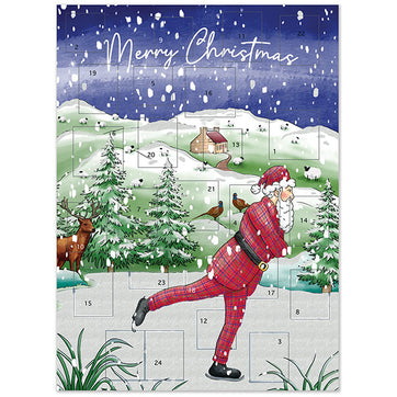 Count down to Christmas with a fun Scottish twist, with this delightful advent Calendar from Edinburgh artists Neon Magpie. This calendar features a charming illustration of Father Christmas himself skating on a lake in a fetching tartan outfit. With shimmering glitter detail this calendar is ideal for displaying as a beautiful addition to your decorations this year. Open each of the 24 doors to reveal a different surprise, perfect for counting down the days to the big day.