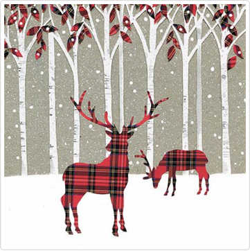 This pack of Christmas cards features a tartan reindeer design. This pack contains 8 Christmas cards and envelopes. Money from the sale of these cards is donated to The Army's National Charity.