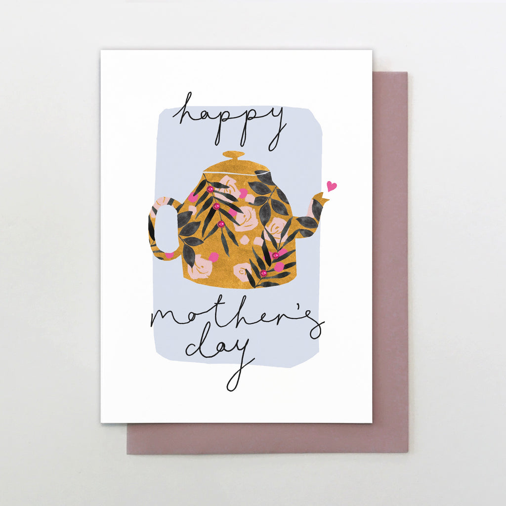 Celebrate Mother's Day with this card and a pot of tea. This card has been left blank inside for a personal message. It comes with a dusky pink envelope.