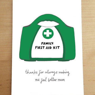 Thanks for always making me feel better mum. This first aid mother's day card is blank inside, is printed on Forest Friendly card and comes with a quality kraft envelope.