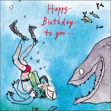 Send birthday 'fishes' with this fun card featuring an illustration of a diver, by acclaimed illustrator Quentin Blake!