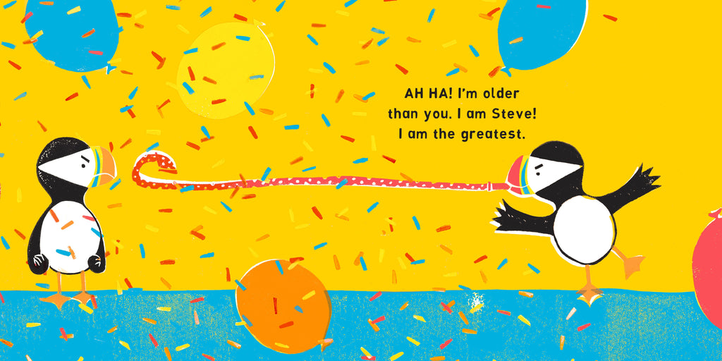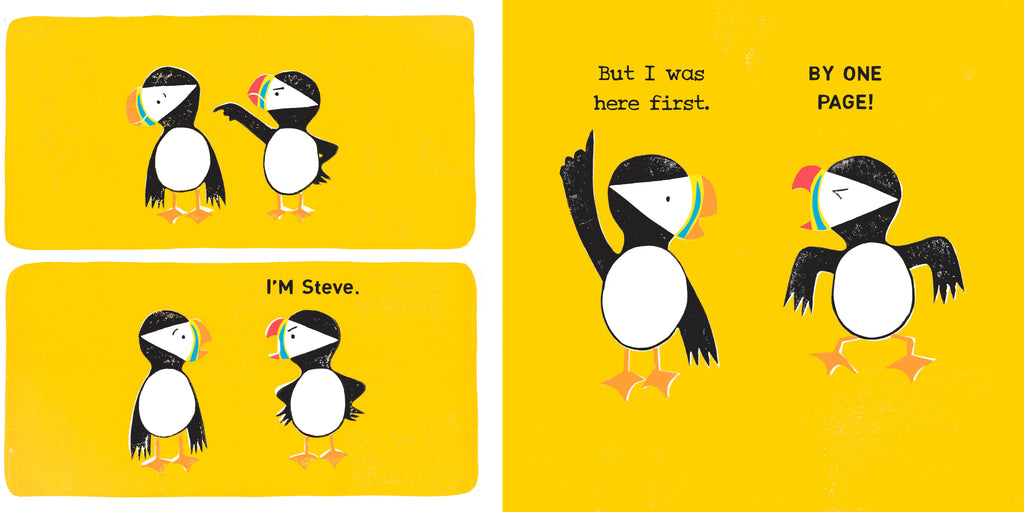 The claims of each puffin become sillier and sillier, and their argument descends into name-calling, until - finally - both Steves realise there’s really no need to fall out over a name!