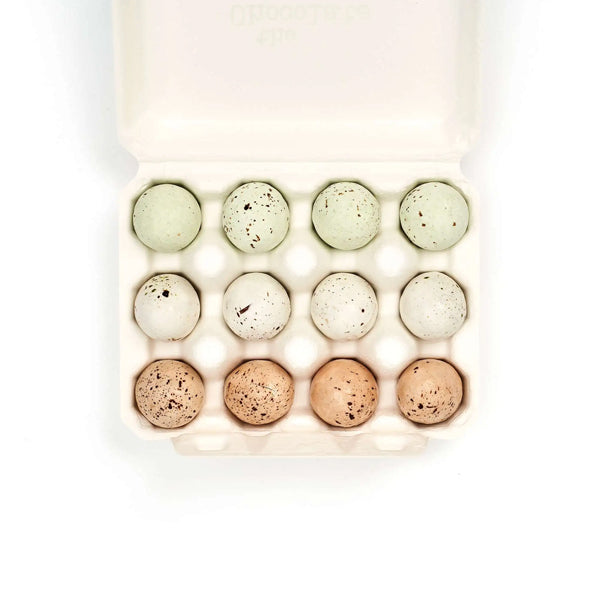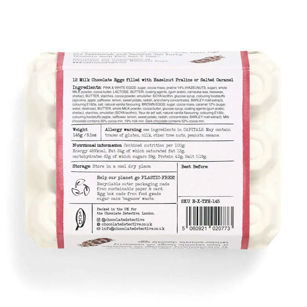 12 Chocolate Eggs filled with a fine hazelnut praline or salted caramel. Curated by The Chocolate Detective, these exquisite, French-made confections are far more glamorous than their feathered namesakes. Each beautifully speckled sugar shell holds a delectable secret: a glorious surprise of either a fine hazelnut praline or a rich, buttery salted caramel that delivers a perfect, sophisticated hit of sweet and savoury.