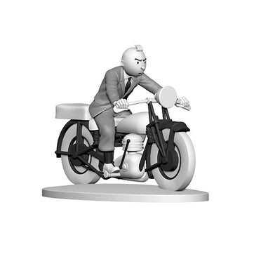 In this scene from his 1939 adventure King Ottokar's Sceptre, our hero Tintin fearlessly rides his motorbike (and looks great doing it!). This monochrome polyresin model is part of the Hors Série collection. Each figure comes in a clear cello box to keep Tintin safe and spotless, along with a French hardback booklet.