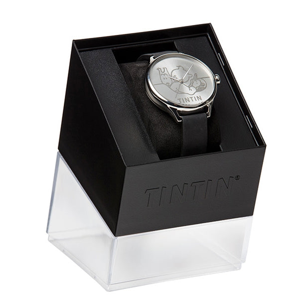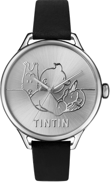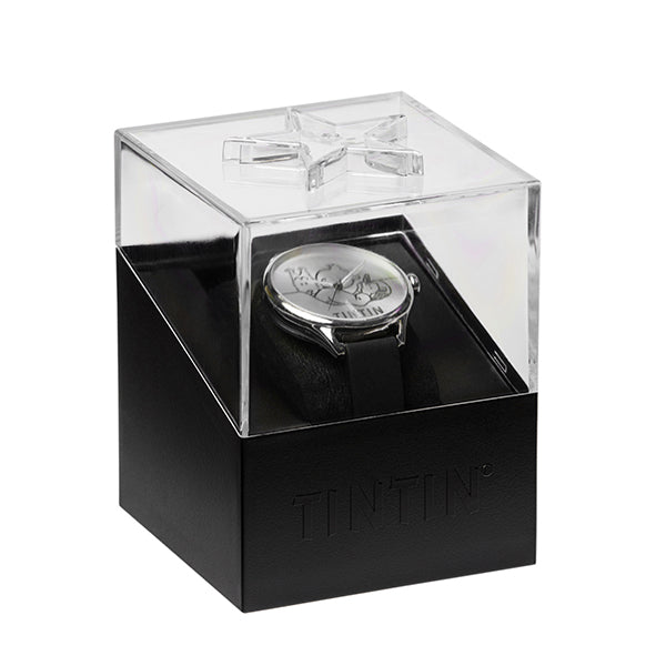 A stylish and refined watch with a stunning domed stainless steel casing and a solarized metal face, perfect for the Tintin fan looking for something sleek and elegant to add to their collection. Featuring original art from Herge's first Tintin Adventure ' In the Land of the Soviets' and a high quality black leather strap this is a timepiece that you will treasure for years to come.