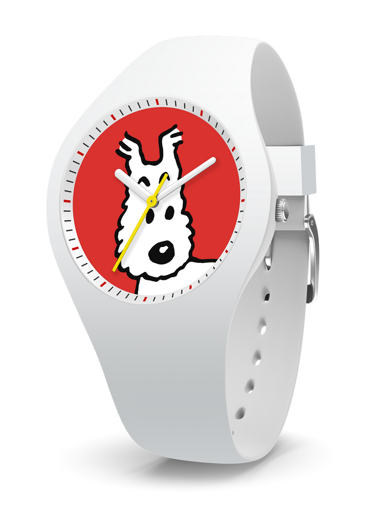Celebrate your favourite Tintin character, Snowy, with this fun little silicone strapped watch in a brilliant minimalist white and red! This wonderful watch really showcases Herge's 'Clear Line' style so typical of the Tintin adventures.