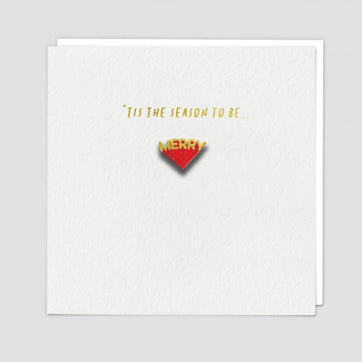 This playful Christmas card comes with a removable enamel pin which reads 'merry' - ideal for spreading festive cheer!