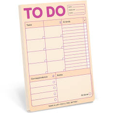 Organise your day with this quirky sheet pad from stationery designers Knock Knock. This design conveniently divides into tasks, errands, correspondence, and notes. 60 tear-off sheets.