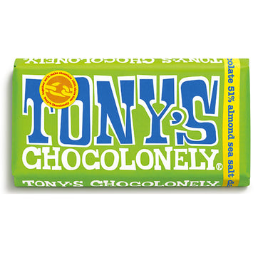 Tony’s Chocolonely brings you a delicious mix of Fairtrade dark chocolate with almonds and sea salt, all wrapped together in a brilliant green paper wrapper. The masters of chocolate from Tony’s Chocolonely are committed to bringing 100% slave free chocolate to the world, and are as serious about people as they are about chocolate. Break a bar up for yourself today!