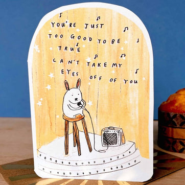 This darling Valentine’s card for ‘some-bunny’ special is the perfect way to tell them they’re simply incomparable. Featuring a whimsical, hand-drawn illustration by Manchester artist Laura Skilbeck, the design stars a charmingly wide-eyed rabbit that perfectly captures that feeling of being completely smitten. Known for her joyful, "mini work of art" style, Laura Skilbeck’s designs move away from computerised perfection in favour of warmth and character. This card isn't just for Valentines; it's a keepsake for those who appreciate the beauty of hand-painted illustration and independent British craft.