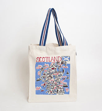 A illustrated canvas tote bag featuring a map of Scotland highlighting all the main placenames and tourist attractions. Ideal for the patriotic shopper!