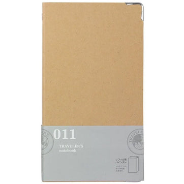 For the dedicated owner of a TRAVELER'S Notebook, this essential Refill Binder (011) is the perfect archival solution to safeguard your journeys and ideas. Designed specifically to fit the various inserts and notepads you've filled on the road, this robust binder offers a unique and elegant way to store and file your completed refill pages. Crafted with a thick card cover, this unit is built to last. It features rounded metal protectors on the corners, ensuring that your precious memories and notes are shielded from wear and tear.