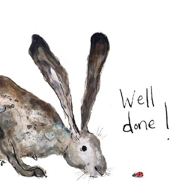 Send congratulations with Trudy and her ladybird friend! Illustrated by Edinburgh artist Catherine Rayner, this card is exclusive to Paper Tiger and is printed in Edinburgh on sturdy watercolour card. It has been left blank for your own well done message and comes ready for sending with an envelope.