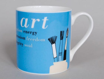 For art inspiration, sit down with a strong cup of tea in this fun and bright mug. Made from sturdy bone china, it will hold 350ml of liquid, and is microwave and dishwasher safe.