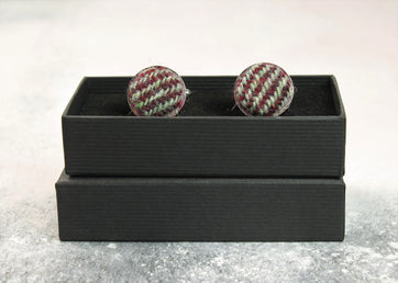 These handsome cufflinks are made from geniune Harris Tweed - 100% pure new wool dyed, spun, handwoven by the weaver and finished in the Scottish Outer Hebrides. This design features a fun green and orange tweed.