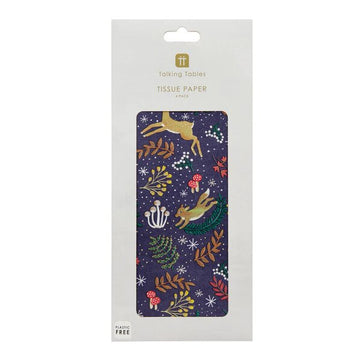 With a deep blue base and adorable, illustrated design of Christmas animals and fauna, this tissue paper is perfect for adding the finishing touch to beautiful gifts.