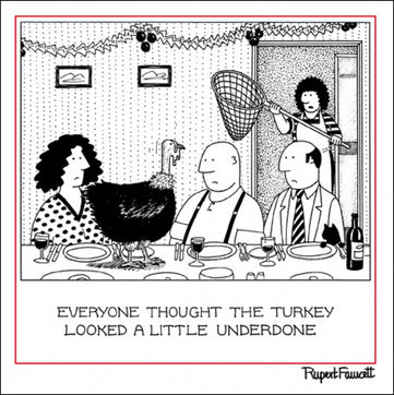 When the turkey still makes noise on the table, it might be a little underdone! This witty Christmas card has been left blank inside for your own message, and comes complete with an envelope ready for sending.